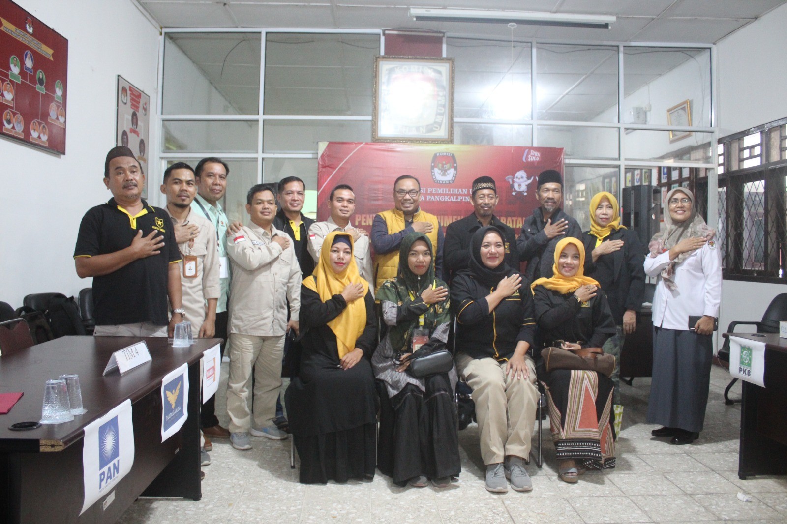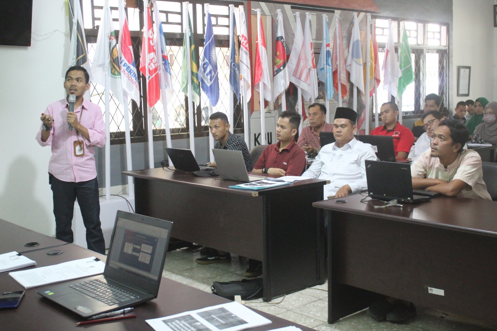 Delegasi partai diterima oleh Ketua KPU Kota Pangkalpinang, Penti, Anggota KPU Yusmayadi, Ruslan, Margarita, dan Muslim Ansori bersama Sekretaris, Yuliana Sandriani didampingi Kasubbag Teknis Penyelenggara Pemilu, Partisipasi, dan Hubungan Masyarakat, M. Nazir serta disaksikan oleh Bawaslu, di Ruang Rapat KPU Kota Pangkalpinang. (humas kpu kota pangkalpinang)