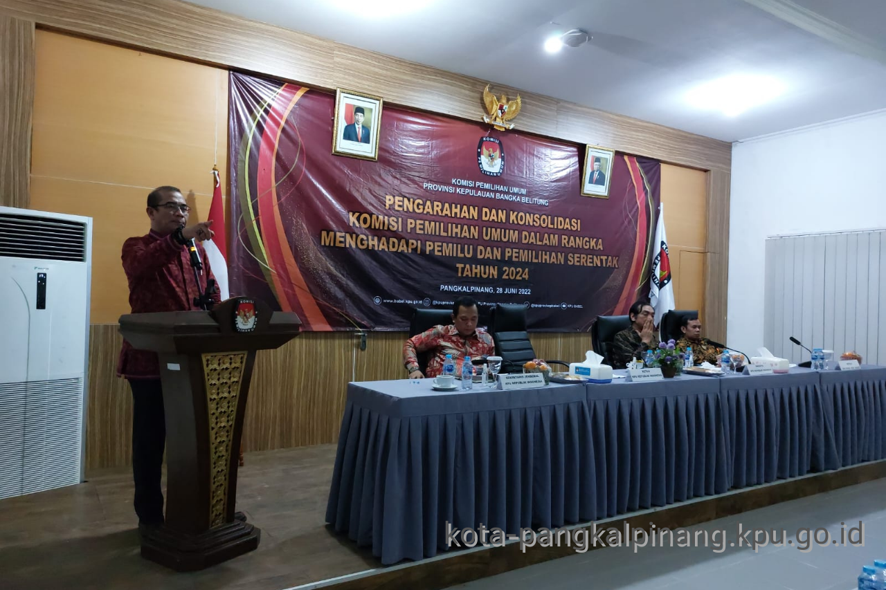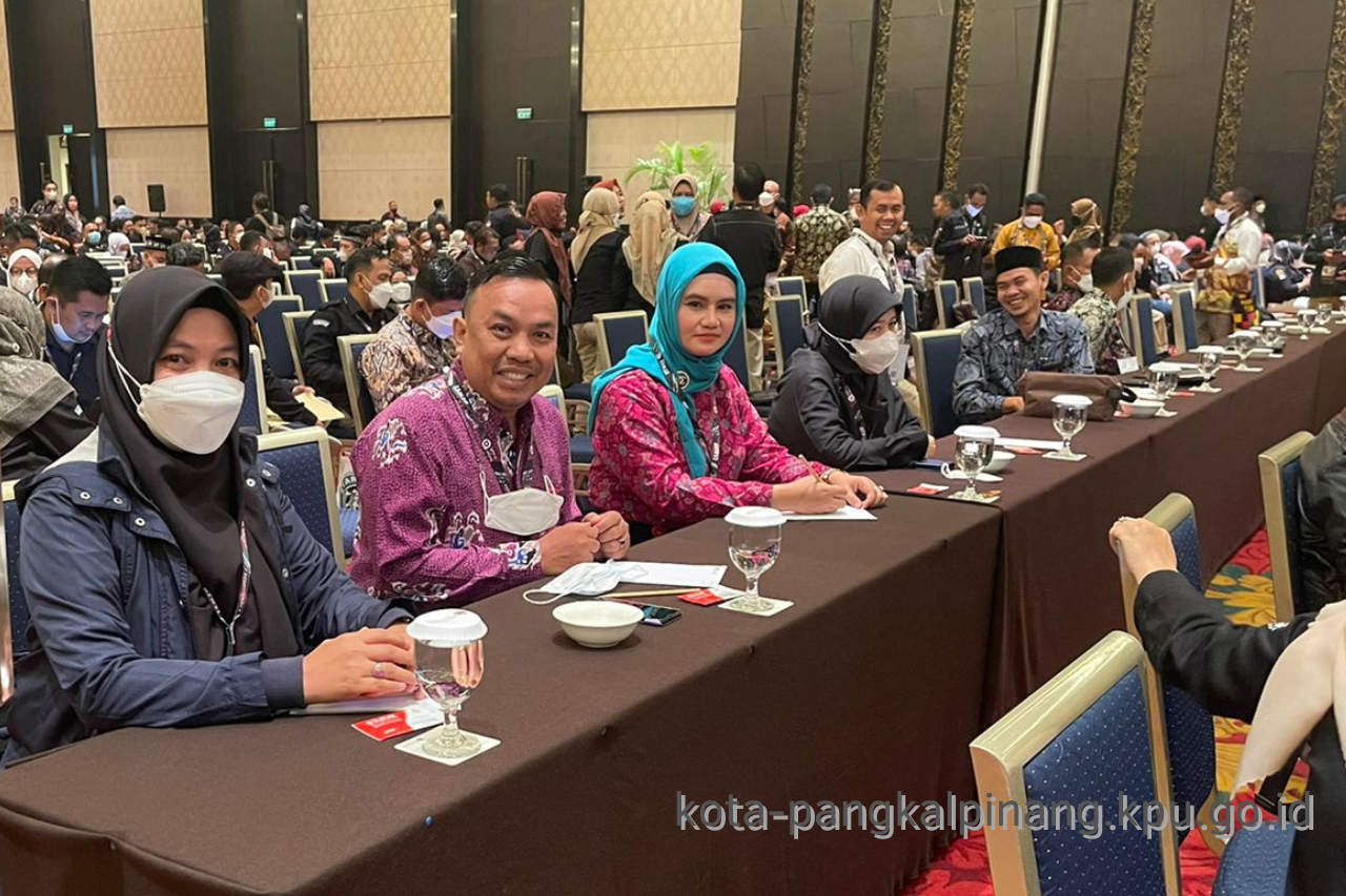 Pangkalpinang, kota-pangkalpinang.kpu.go.id — KPU Kota Pangkalpinang mengikuti Rapat Koordinasi (Rakor) Dukungan Pelaksanaan Tahapan Pemilu dan Pemilihan Serentak Tahun 2024 Bidang Perencanaan, Sarana dan Prasarana, Serta Pengelolaan Keuangan yang berlangsung di Nusa Dua Bali, Selasa (23/08/2022). Kegiatan ini diikuti oleh Ketua KPU Kota Pangkalpinang Penti, Anggota Divisi Perencanaan, Data dan Informasi Margarita, Kasubbag Keuangan, Umum, dan Logistik Eka Oktaviana, dan Kasubbag Perencanaan, Data dan Informasi Susanti dan peserta lainnya dari KPU Provinsi/KIP Aceh dan KPU/KIP Kab/Kota se-Indonesia. Dalam sambutannya, Ketua KPU RI Hasyim Asy'ari meminta satuan kerja KPU berkonsentrasi penuh dalam membahas khususnya perencanaan keuangan. Hasyim juga mengingatkan agar KPU Provinsi sebagai pemimpin kepemiluan dapat mengendalikan KPU Kab/Kota untuk bekerja cermat, tertib, disiplin dan berdasar aturan. Sementara itu, Anggota KPU RI Yulianto Sudrajat menyampaikan terkait anggaran KPU Tahun 2022, rincian kegiatan tahapan KPU Tahun 2022, komposisi anggaran tahun 2022 untuk satuan kerja KPU, KPU Provinsi, KPU Kab/Kota, tata kelola keuangan Pemilu, hingga pengelolaan dan data aset Barang Milik Negara (BMN) KPU. (humas kpu kota pangkalpinang)