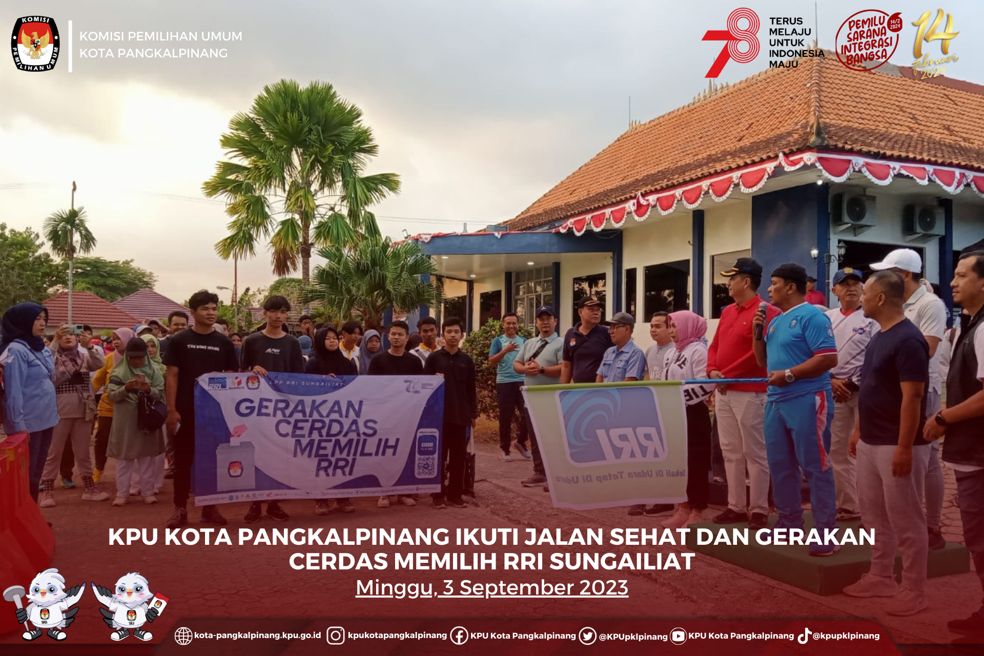 Pangkalpinang, kota-pangkalpinang.kpu.go.id - Anggota KPU Kota Pangkalpinang, Ruslan mengikuti kegiatan Jalan Sehat dan Gerakan Cerdas Memilih yang diselenggarakan oleh RRI Sungailiat pada Minggu (03/09/2023).