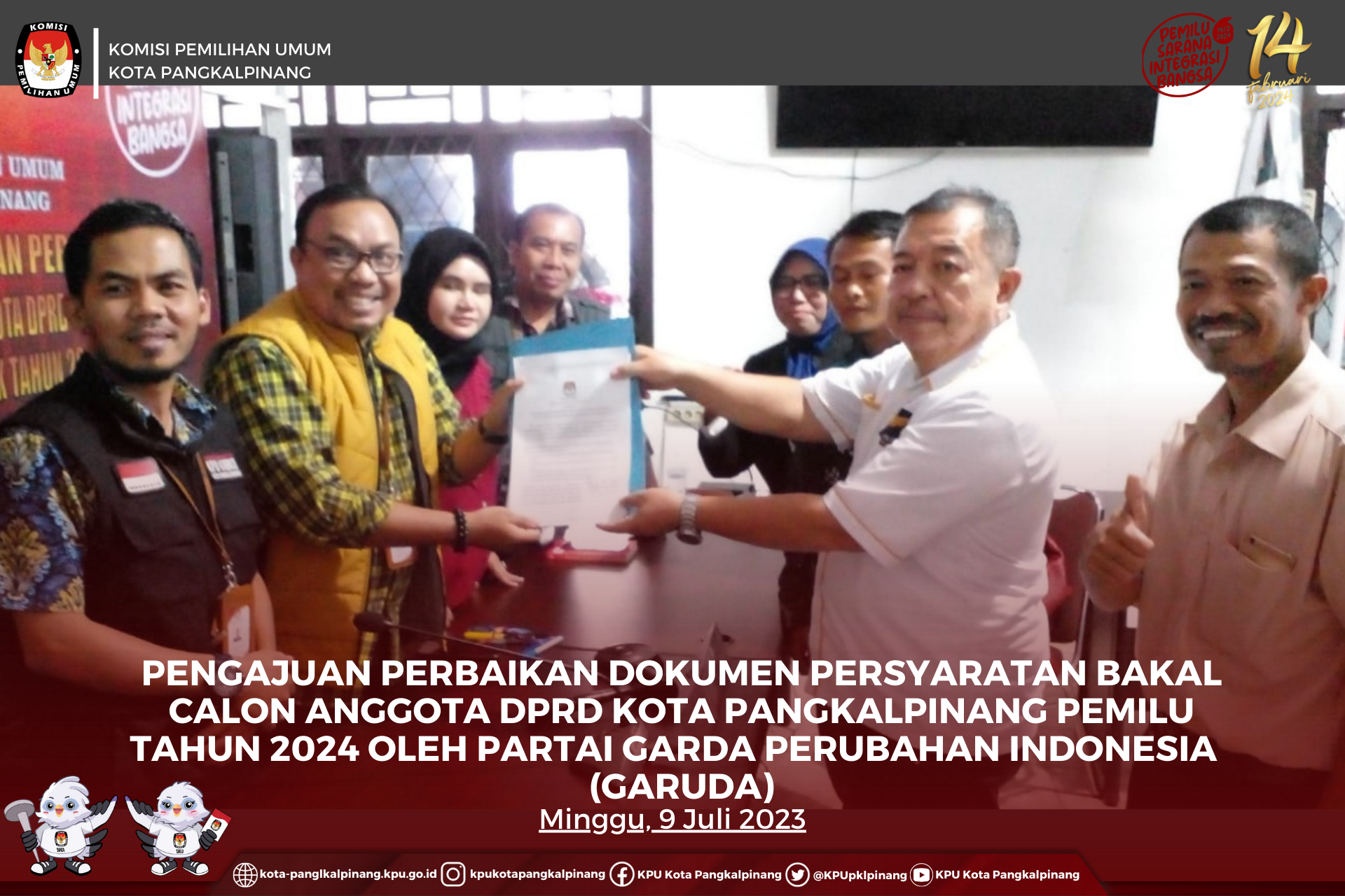 Pangkalpinang, kota-pangkalpinang.kpu.go.id - Partai Garda Perubahan Indonesia (GARUDA) Kota Pangkalpinang mengajukan perbaikan dokumen persyaratan Bakal Calon Anggota DPRD Kota Pangkalpinang Pemilu Tahun 2024, Minggu (09/07/2023) di Kantor KPU Kota Pangkalpinang.