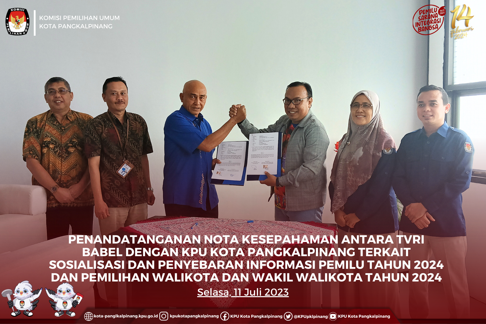 Pengajuan dilakukan pada pukul 12.11 WIB. Delegasi partai diterima oleh Ketua KPU Kota Pangkalpinang, Penti, Anggota KPU Yusmayadi dan Margarita, didampingi Kasubbag Teknis Penyelenggara Pemilu, Partisipasi, dan Hubungan Masyarakat, M. Nazir serta disaksikan oleh Bawaslu, di ruang rapat KPU Kota Pangkalpinang. (humas kpu kota pangkalpinang)