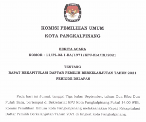 Berita Acara Rekapitulasi Daftar Pemilih Berkelanjutan Kota Pangkalpinang Bulan September 2021
