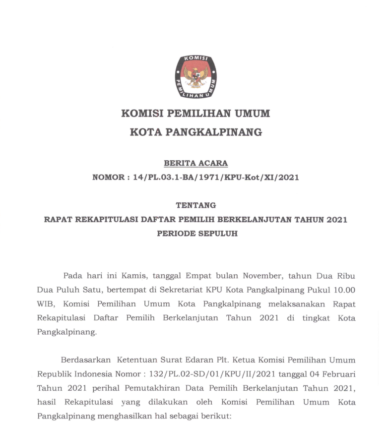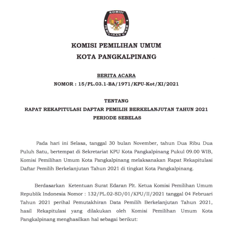 Berita Acara Rekapitulasi Daftar Pemilih Berkelanjutan Kota Pangkalpinang Bulan November 2021