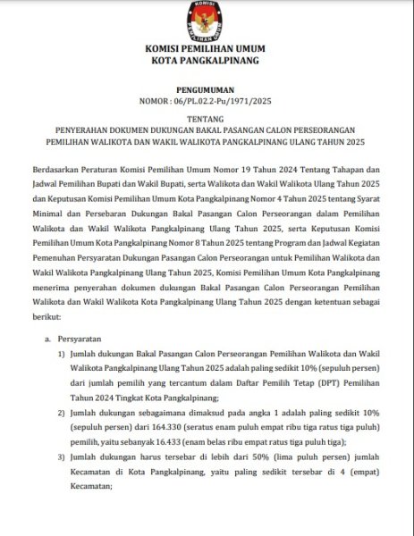 PENGUMUMAN NOMOR: 03/PP.04.2-Pu/1971/2025