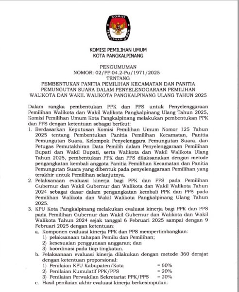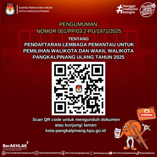 1. PENGUMUMAN PENDAFTARAN LEMBAGA PEMANTAU UNTUK PEMILIHAN WALIKOTA DAN WAKIL WALIKOTA PANGKALPINANG ULANG TAHUN 2025