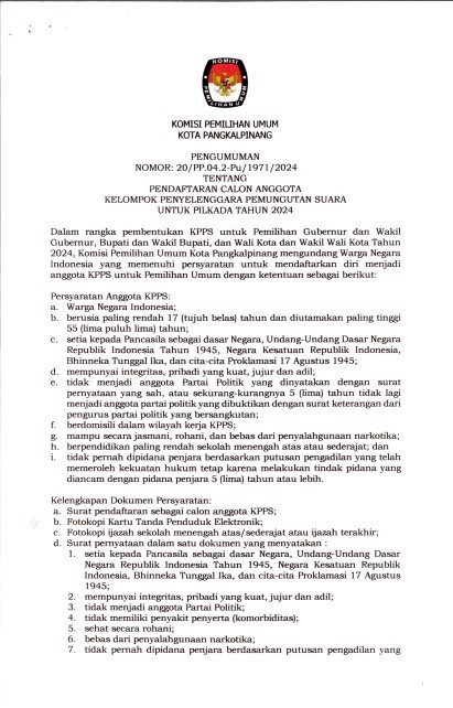 Pengumuman Nomor 20/PP.04.2-PU/1971/2024