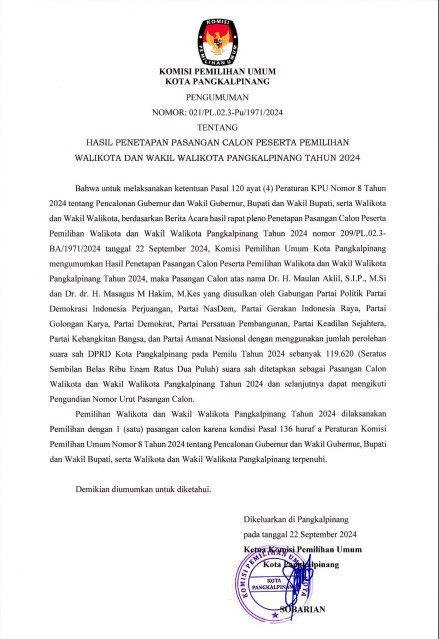 KEPUTUSAN KOMISI PEMILIHAN UMUM KOTA PANGKALPINANG