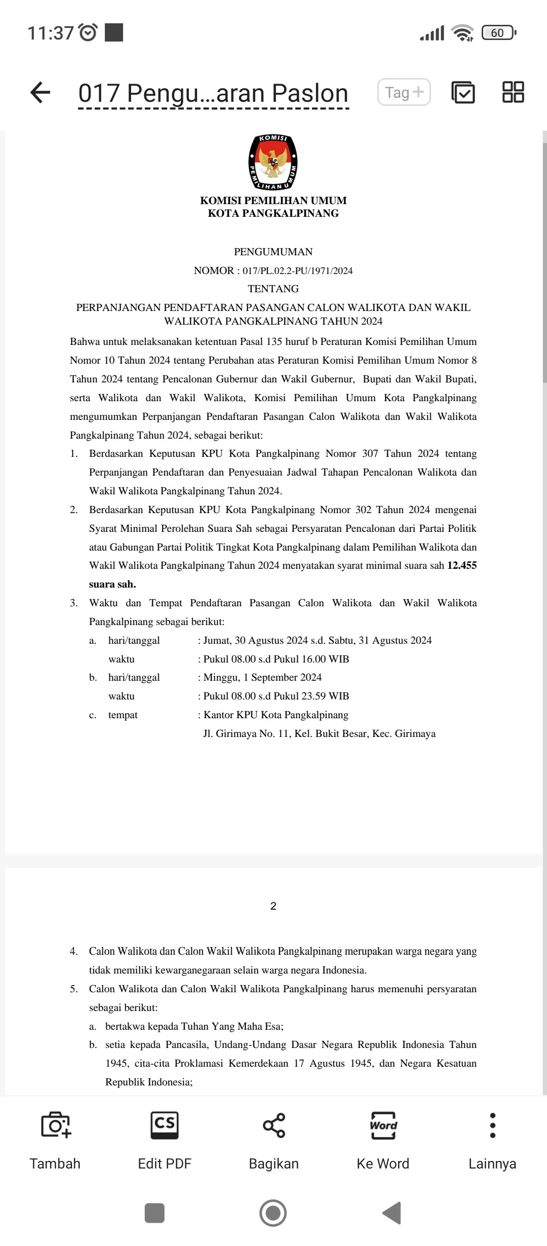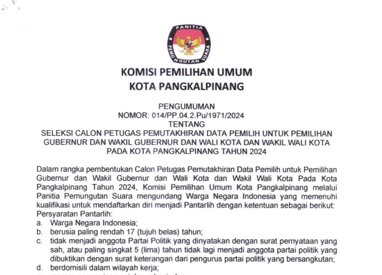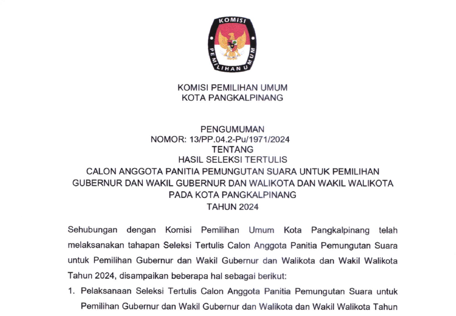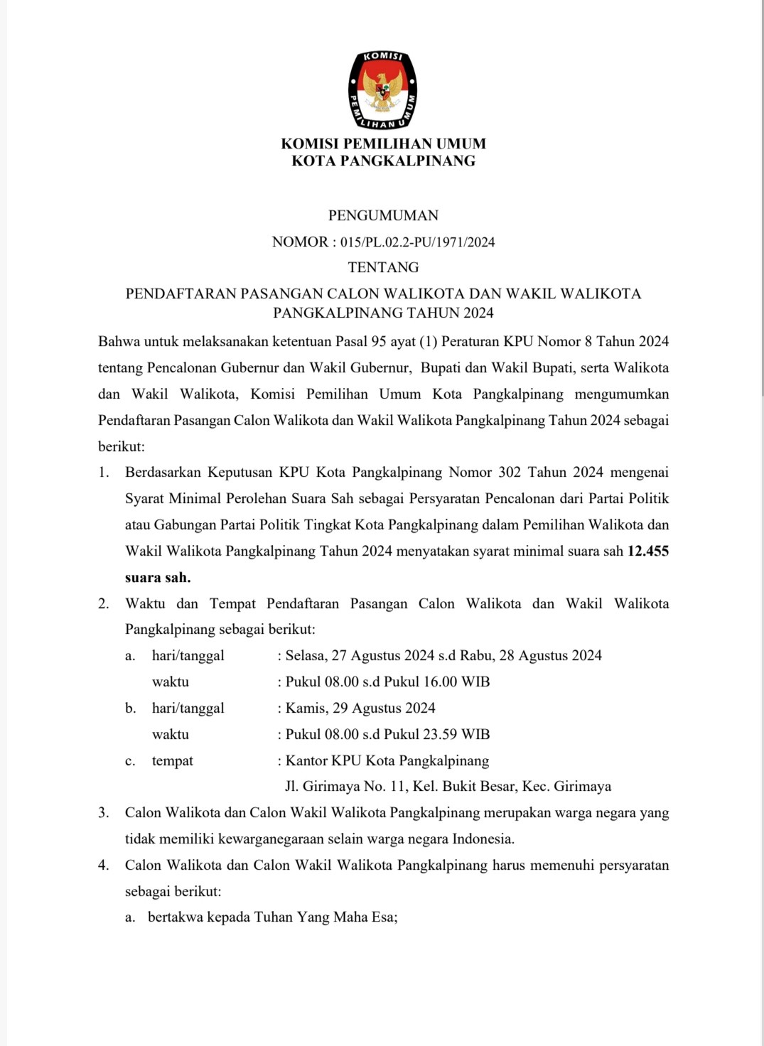 NOMOR : 017/PL.02.2-PU/1971/2024 TENTANG PERPANJANGAN PENDAFTARAN PASANGAN CALON WALIKOTA DAN WAKIL WALIKOTA PANGKALPINANG TAHUN 2024