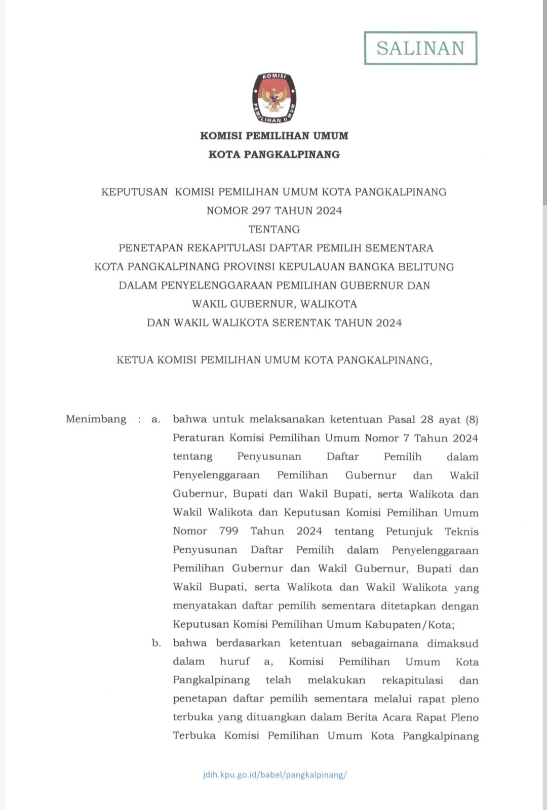 1.SK Penetapan Rekapitulasi Daftar Pemilih Sementara (DPS) Kota Pangkalpinang